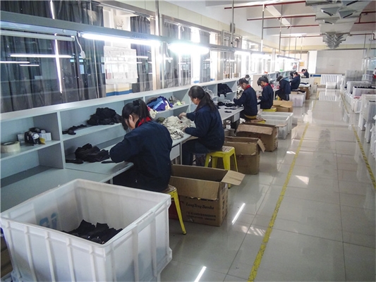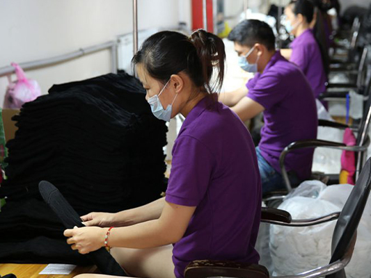 我们拥有从染纱、编织、缝合、上板到包装的全套生产线。